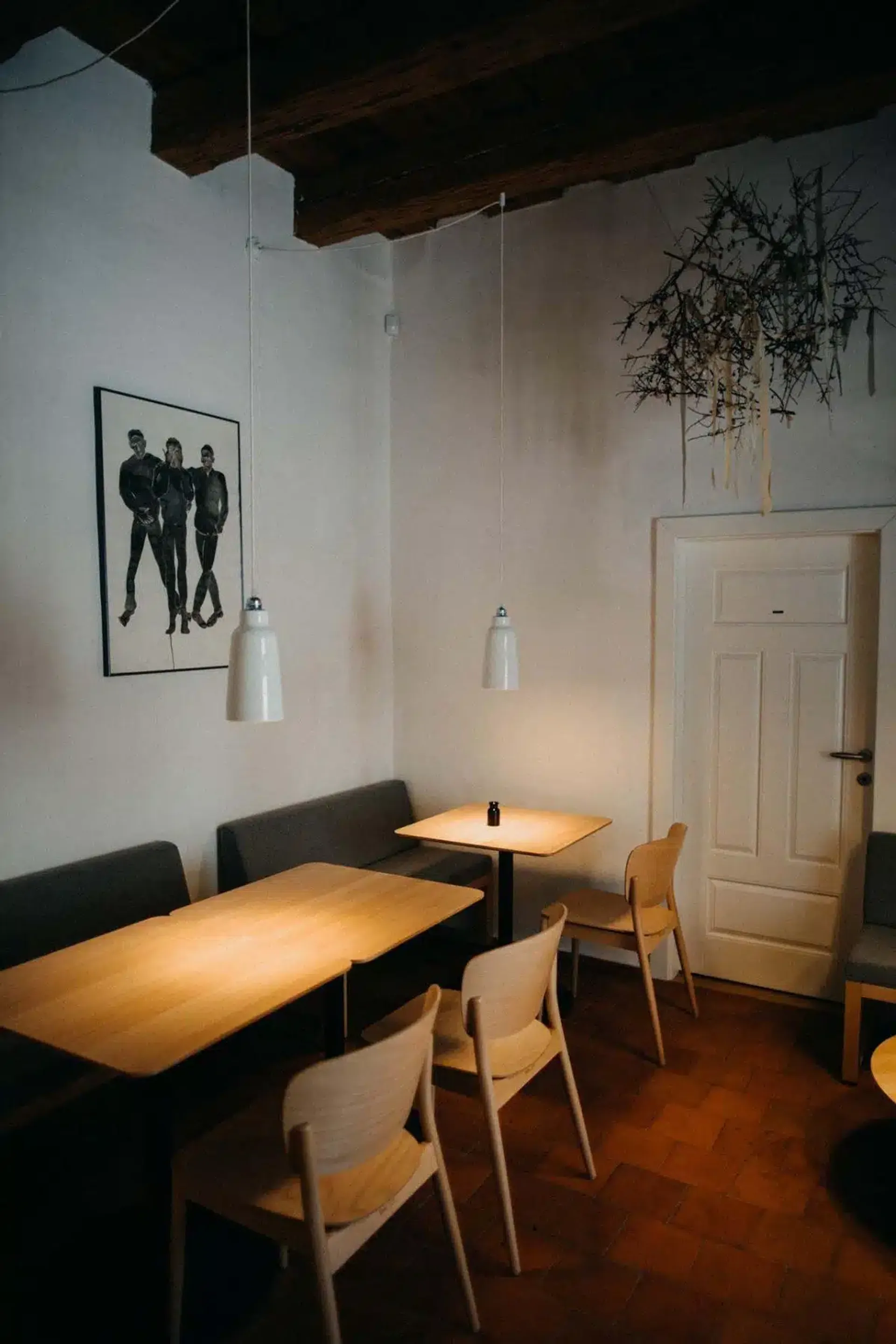 Interiér jsme si dělali sami. Chtěli jsme spolupracovat s umělci, které máme rádi, takže třeba květinovou výzdobu na otevření nám dělala Lucie Králíková z Brna, obrazy jsme si vypůjčili od pana faráře, který nám kontakt s biskupstvím zprostředkoval – to je otec Vítězslav Řehulka – některé ty obrazy jsou originály z přelomu 17. a 18. století. Je tam i akvarel od Císařovského a grafika od Kuby Špaňhela. To jsou takové naše srdcovky. Teď květinovou výzdobu dělá především Mája, ale najdete tam i krásné Květiny od Hany.