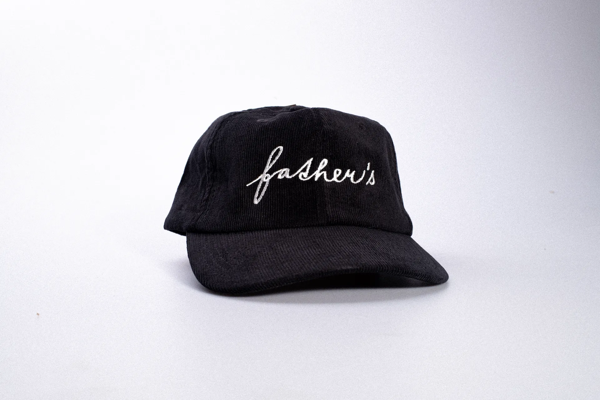 Corduroy cap with writing logo. This is the first piece of our new merchandise featuring the writing logo. It is available in black, camel (brown), and dark green. Material: 100% cotton Add a bag of coffee to your card to secure free shipping.