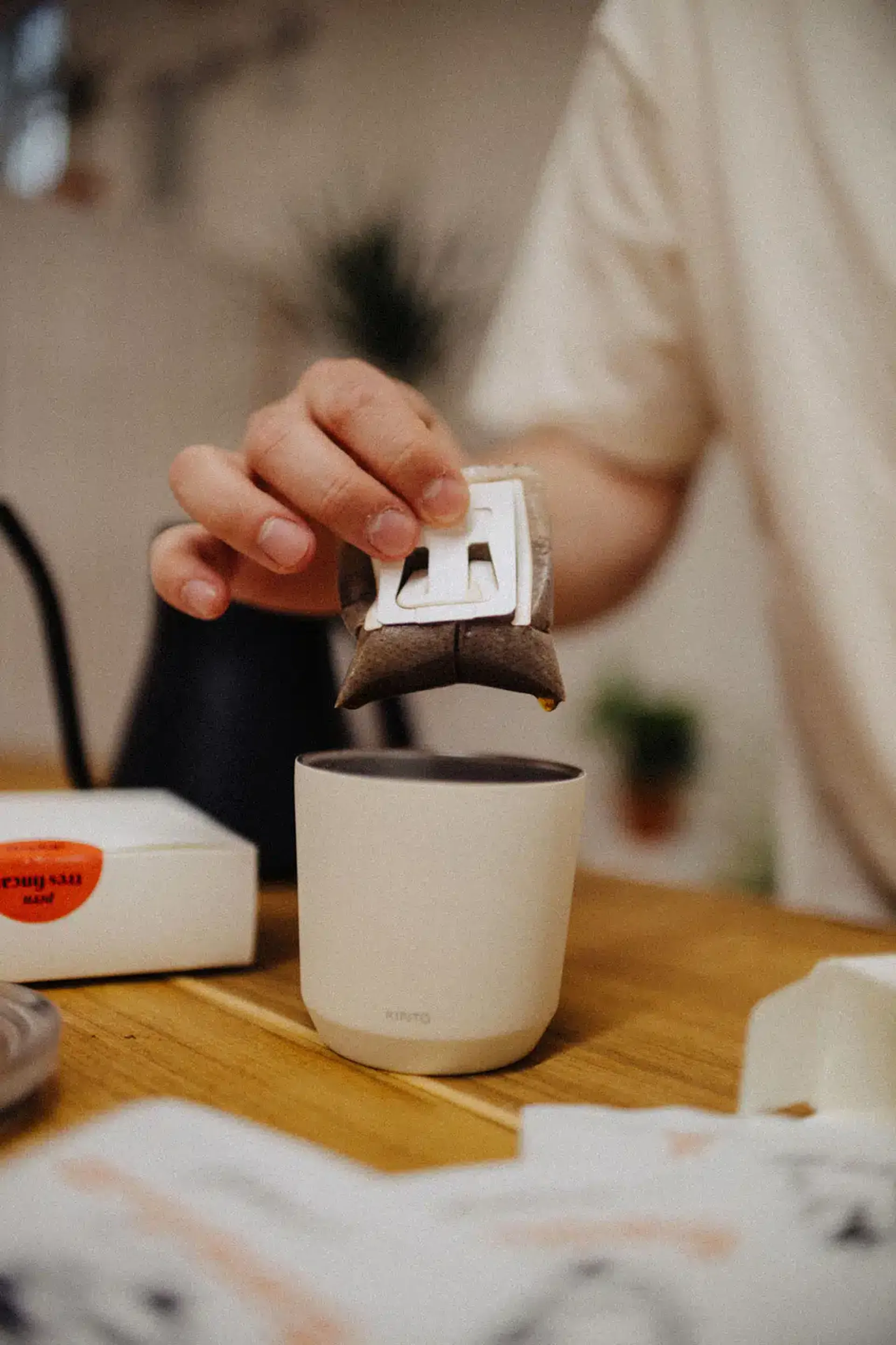 Umístěte drip bag na šálek nebo konvičku. Nalijte vroucí vodu, dokud nebude drip bag napůl plný. Počkejte 20 sekund. Pomalu naplňte drip bag až po okraj vroucí vodou. Počkejte, dokud téměř neodteče. Znovu naplňte drip bag až po okraj vroucí vodou. Počkejte, dokud drip bag úplně neodteče. Užijte si kávu ✨