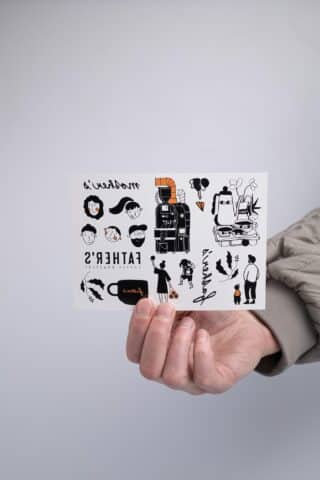 You’ll find our typical motifs here – Father’s, Mother, the roaster, a cup, dad with mom, and the whole family. Each one is a small reminder that coffee isn’t just a beverage, but also the relationships around it.